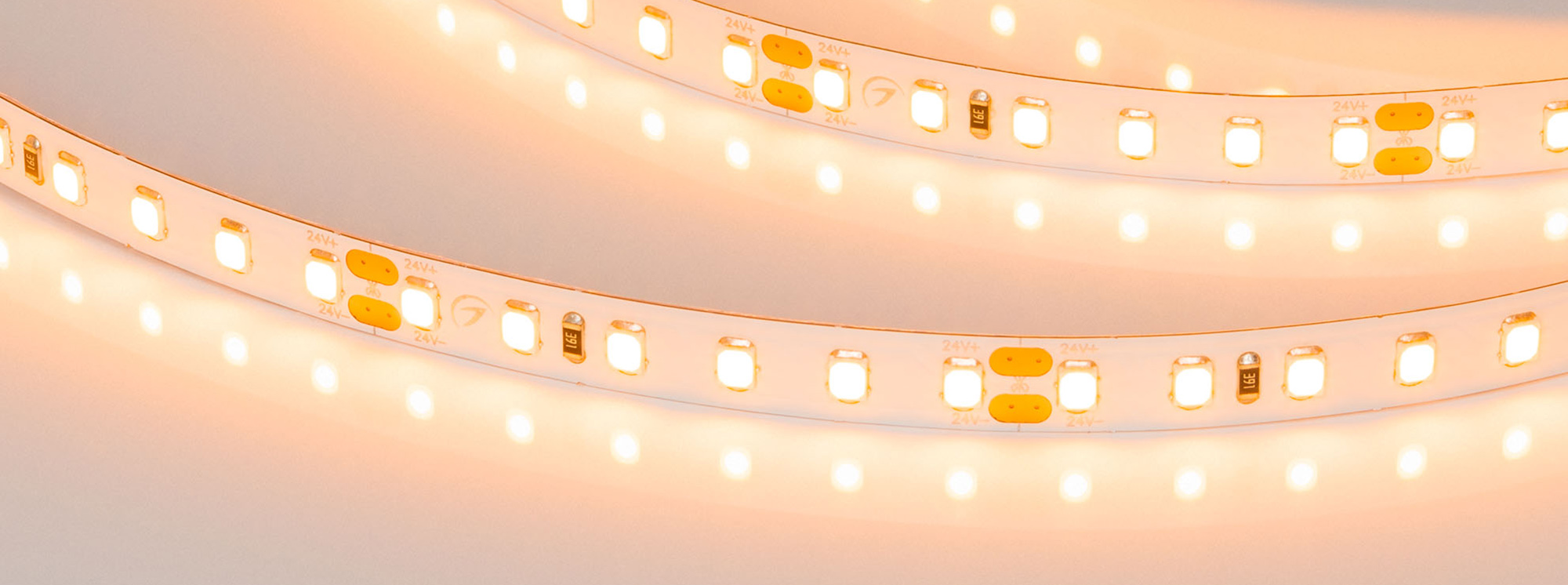 Универсальная светодиодная лента UL серии A120 шириной 8 мм, мощностью 9.6 Вт/м, с гарантией 7 лет. Напряжение питания 24 В. Светодиоды SMD 2835, 120 шт/м, теплого цвета свечения (1900K). Высокий индекс цветопередачи CRI>90 обеспечивает точное восприятие цветовых оттенков при освещении любых помещений. Минимальный отрезок 50 мм (6 светодиодов). Применяется для декоративной подсветки любых жилых, коммерческих помещений, декоративной подсветки интерьеров, потолочных ниш, рабочих зон кухни, мебели, рекламных конструкций и витрин. Рекомендуется установка на профиль.