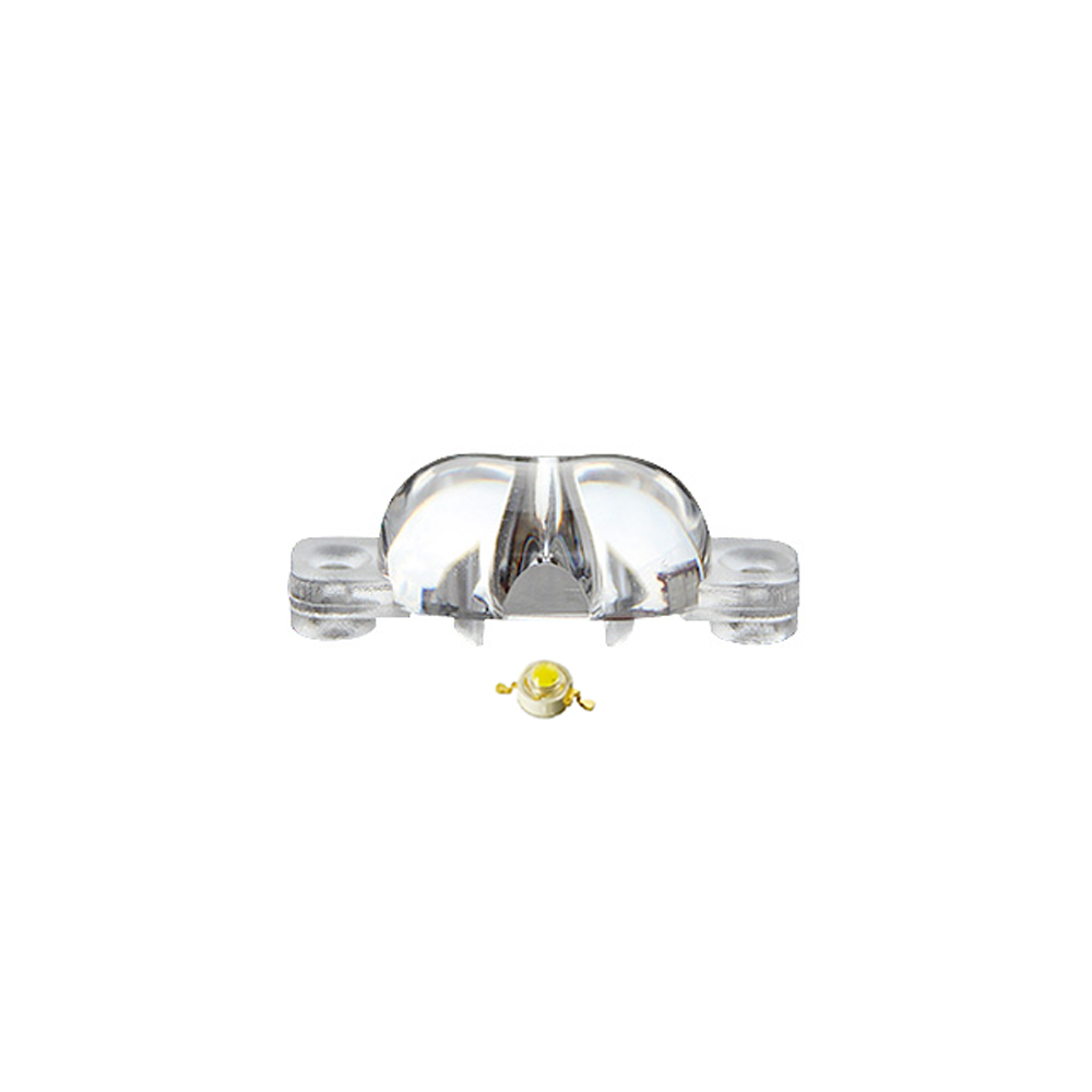 Одиночная линза цельная (с несъемным холдером) для мощного светодиода Emitter. Угол обзора: вертикальный 130°, горизонтальный 60°, прозрачная линза. Материал PMMA. Длина 30 мм, ширина 13.5 мм.