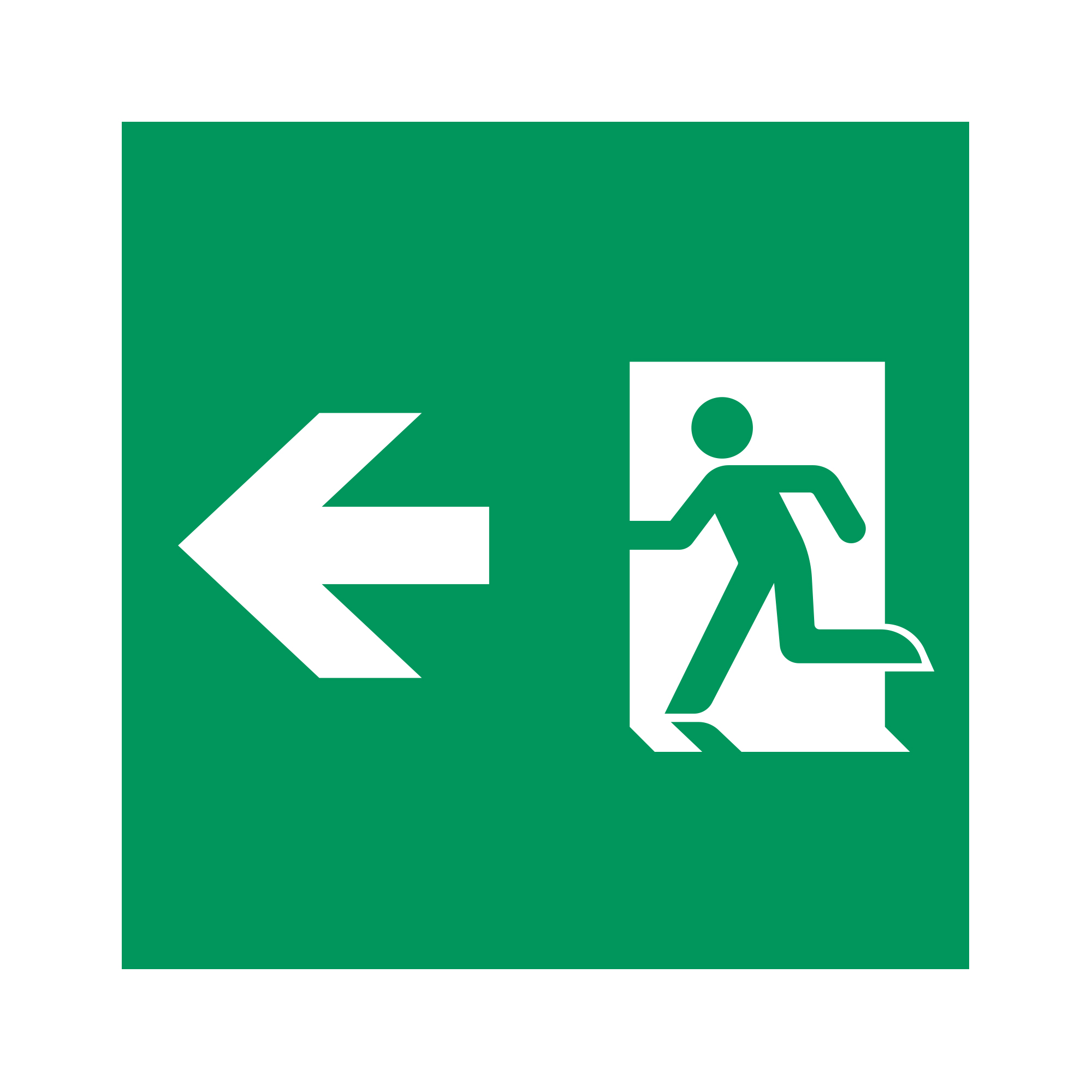 Пиктограмма "человек, стрелка влево" для аварийных панелей серии EMG-MARK. Выполнена из пластика, вставляется в LGP панель аварийного указателя.