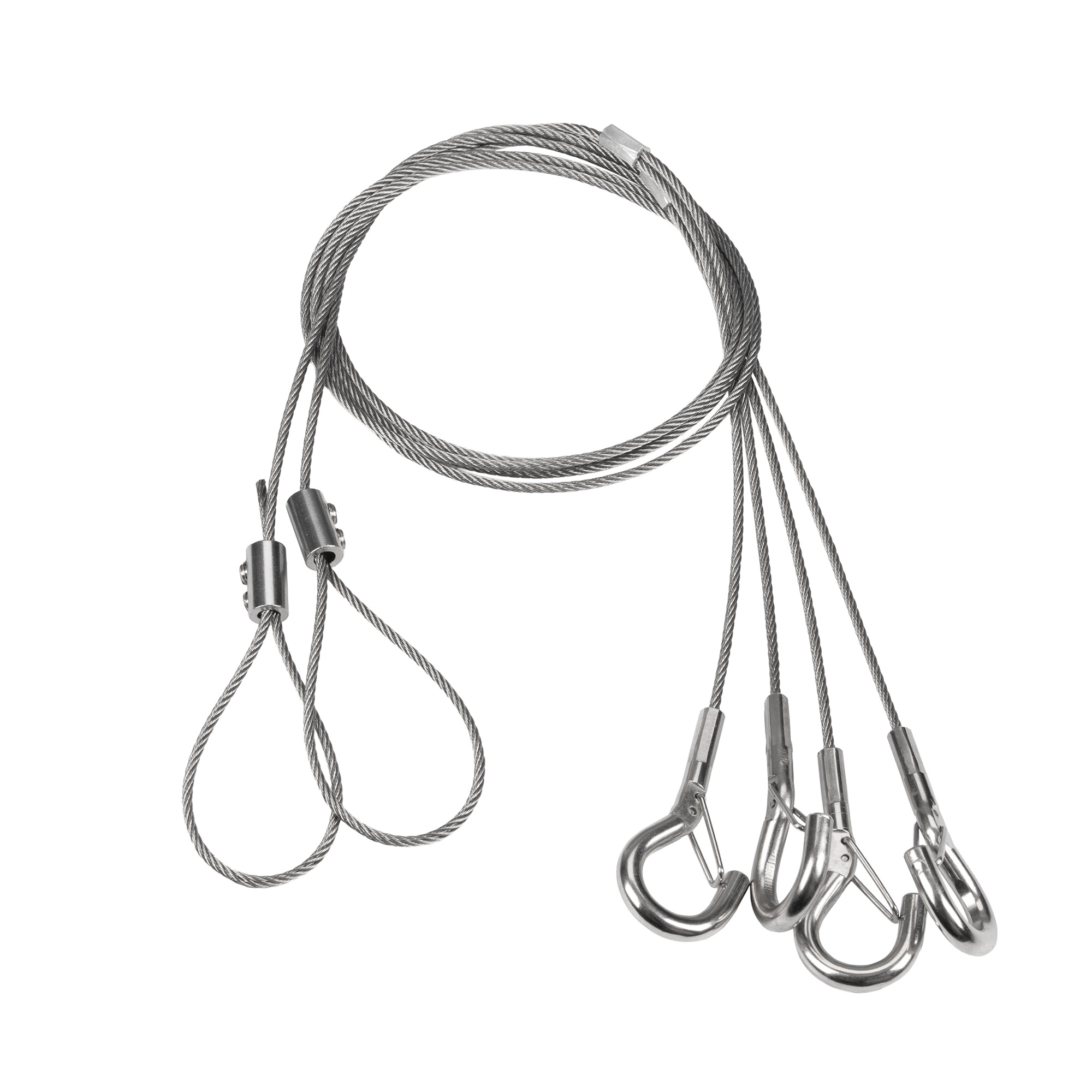 Набор подвесов для светильников SP-KATANO. Цвет - серебристый. В комплекте 4 троса и 4 крюка. Длина троса - 1 м. Цена указана за 1 комплект.