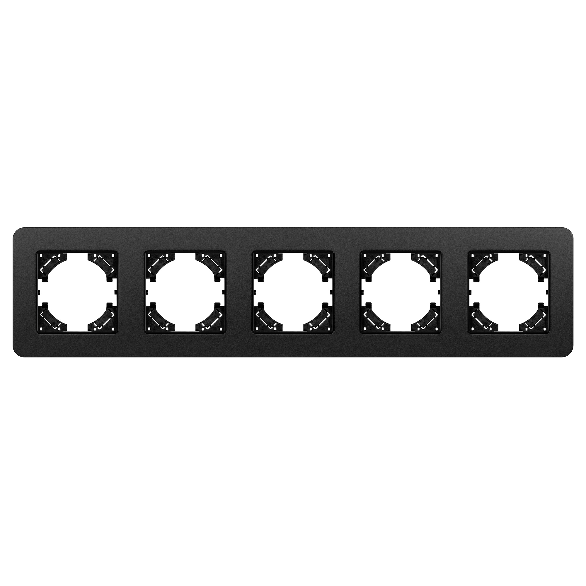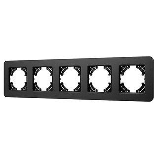 Рамка алюминиевая на 5 постов, под встраиваемый механизм. Цвет - черный с Soft-Touch покрытием. Среднего уровня герметичности IP20. Ориентация монтажа - горизонтальная (основным ориентиром служат посадочные выступы для накладки механизма).